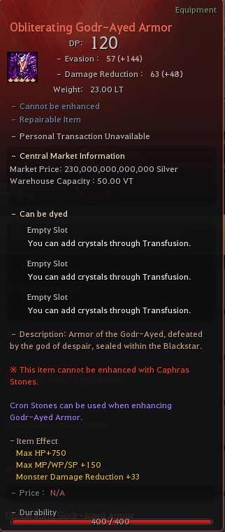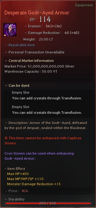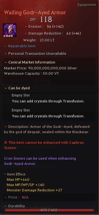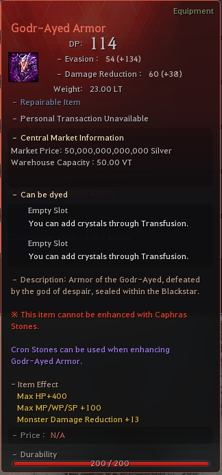 Detailed stats of the item: Godr-Ayed Armor Stats