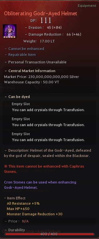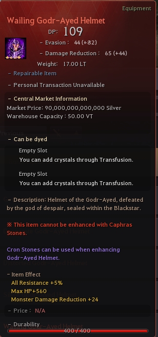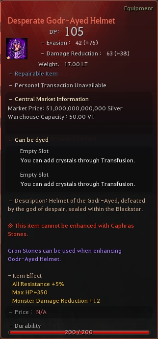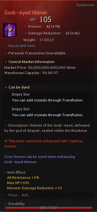 Detailed stats of the item: Godr-Ayed Helmet Stats