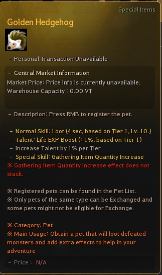 This pet will give you small chance that increases your gathering loot