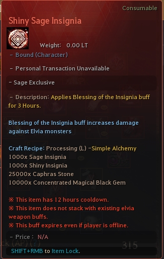 Gives buff for 3 hours as Elvia weapon buff with different buff name