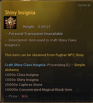 An item used to craft Shiny Class Insignia's which can be purchased from Fughar NPC in cities.