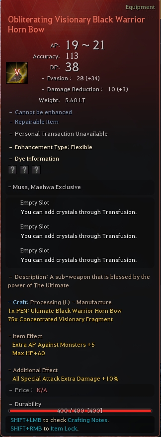 Visionary Sub-Weapons can be enhanced using Visionary Magical Black Ston